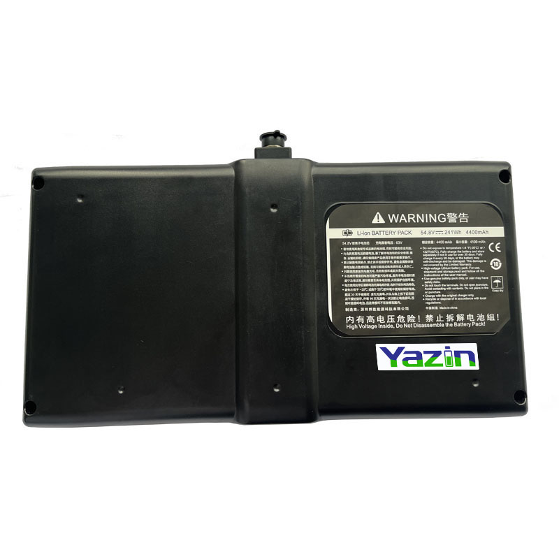 品牌 : YAZIN 产品型号:YZN02锂电池 标准电压:54.6V 额定容量:4.4(AH)尺寸: 305mm*161mm*41mm(尺寸可定制) 重量:3KG 瓦时:240.24Wh循环次数:500次 储存温度:0-30